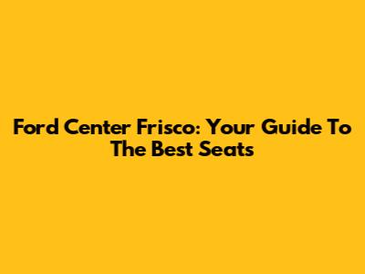 Ford Center Frisco: Your Guide To The Best Seats
