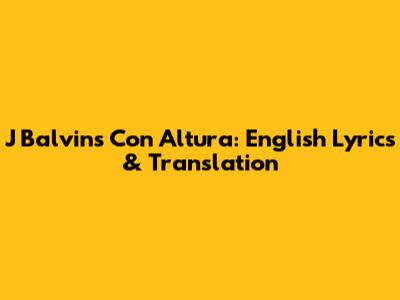 J Balvin's 'Con Altura': English Lyrics & Translation