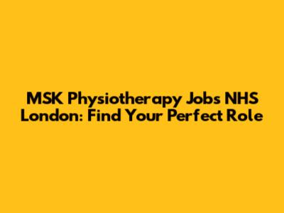 MSK Physiotherapy Jobs NHS London: Find Your Perfect Role