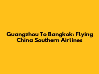 Guangzhou To Bangkok: Flying China Southern Airlines