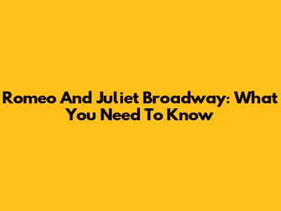 Romeo And Juliet Broadway: What You Need To Know