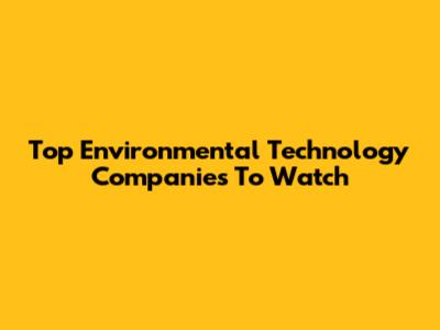 Top Environmental Technology Companies To Watch