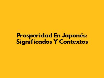 Prosperidad En Japonés: Significados Y Contextos