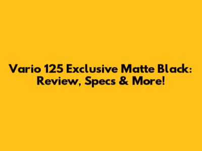Vario 125 Exclusive Matte Black: Review, Specs & More!